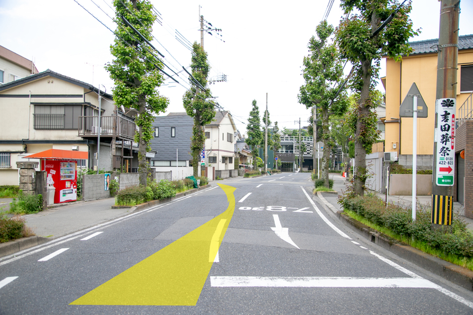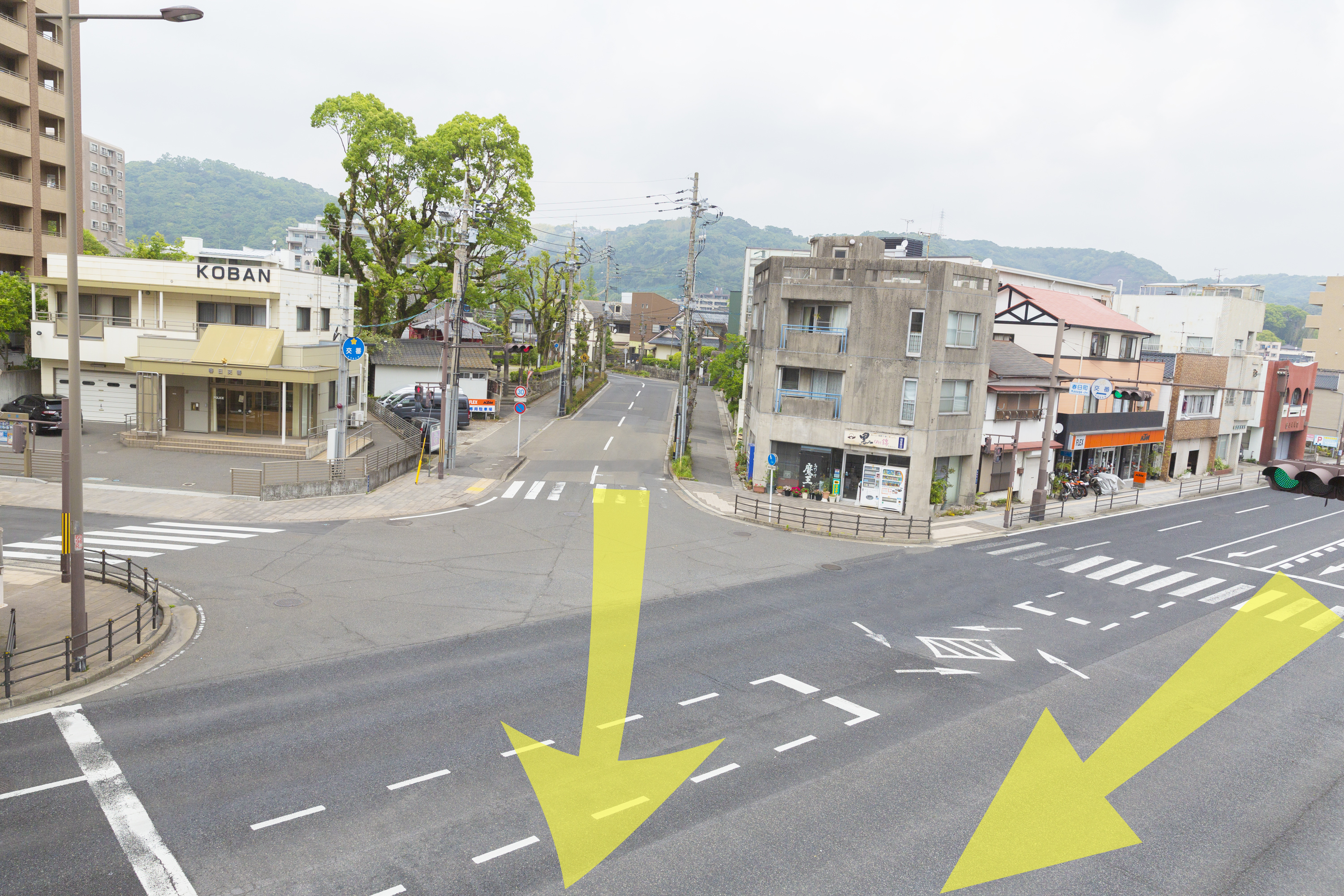 交差点を曲がると交番があるので右の筋へお進みください