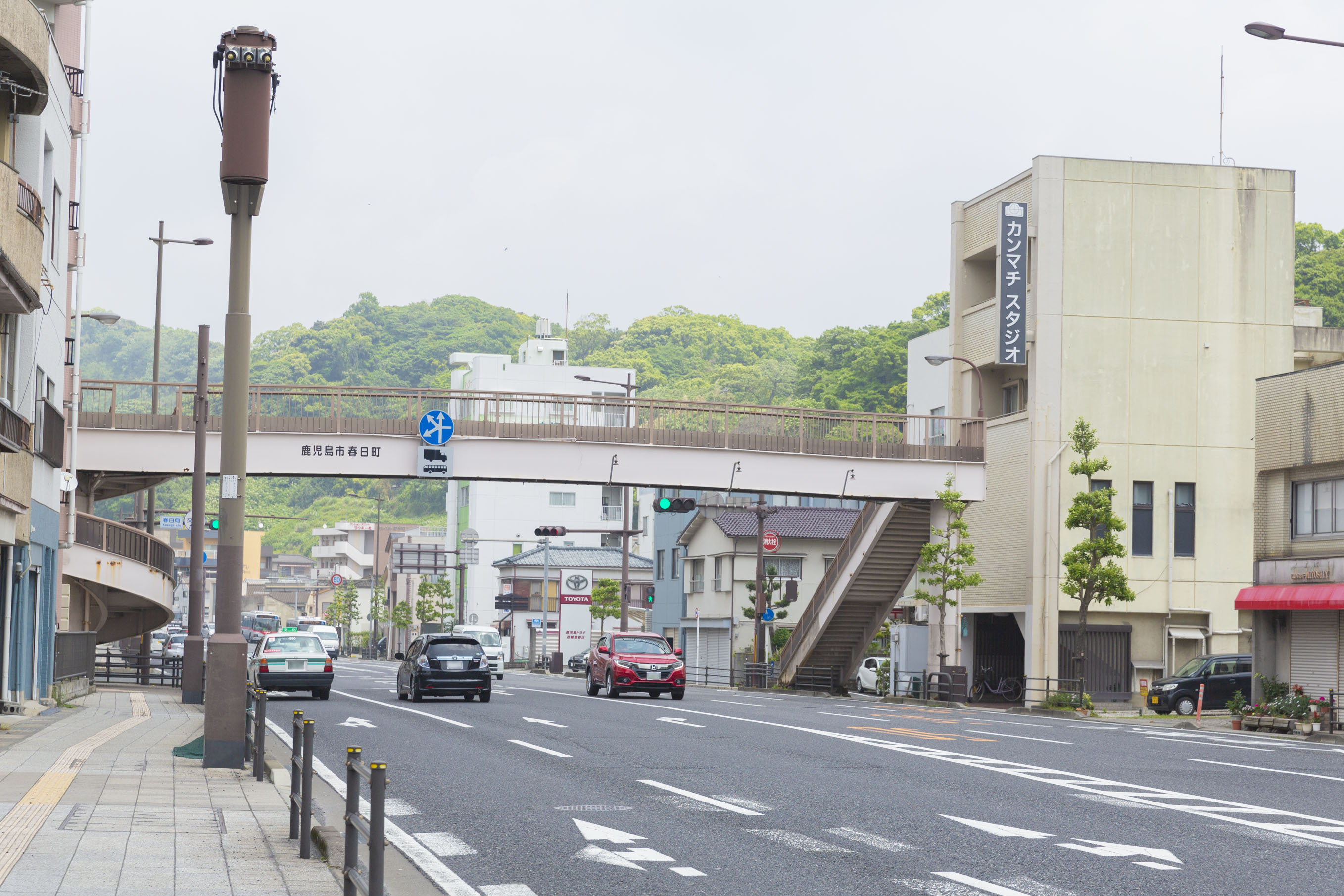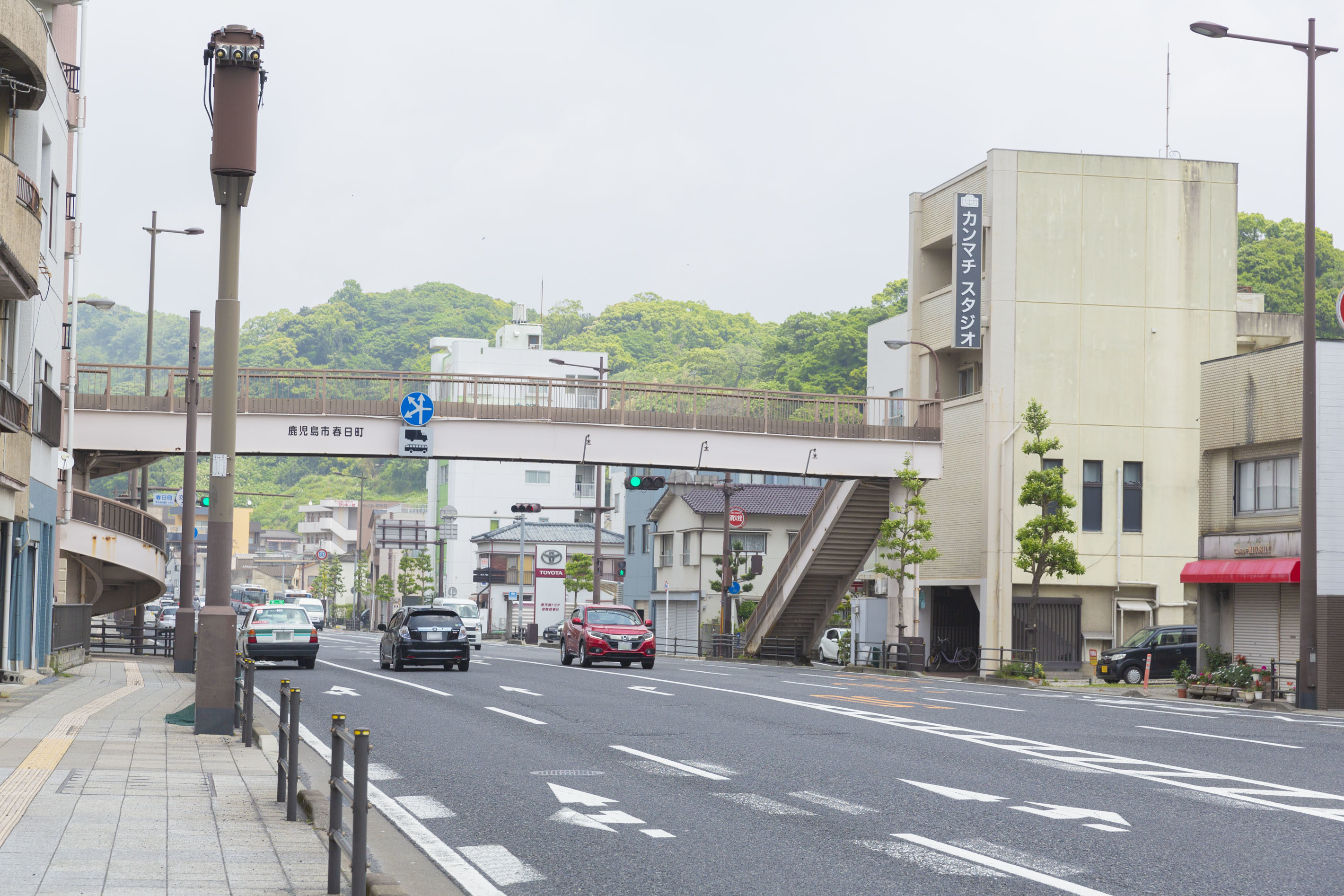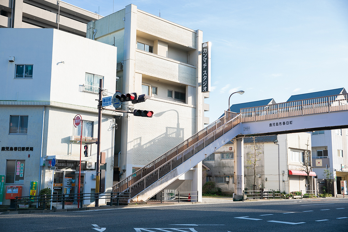 天文館方面からお越しのお客様はスタジオが右側の反対車線に